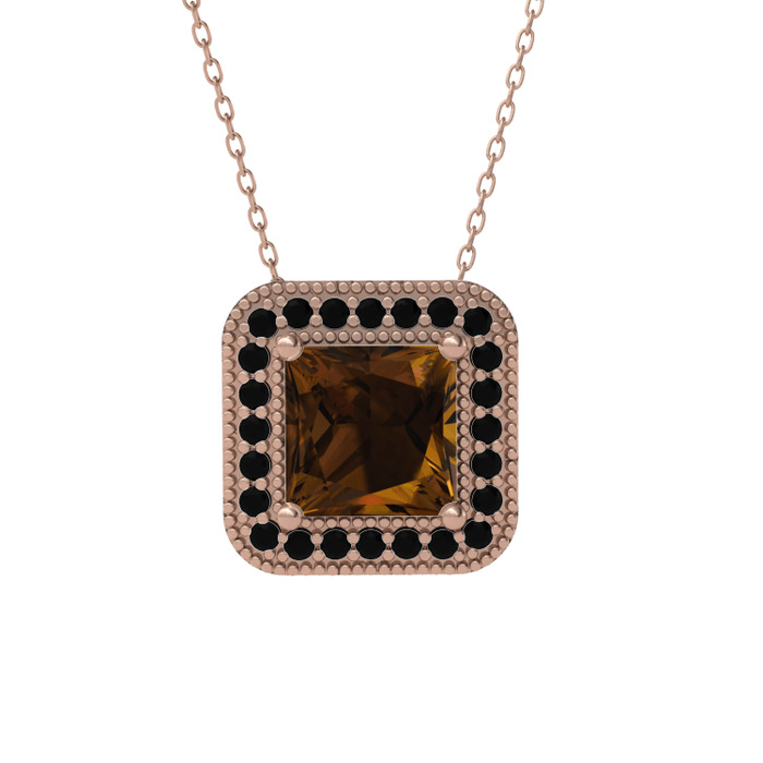 Dumanlı kuvars ve siyah zirkon 14 ayar rose altın kolye (40 cm gümüş rolo zincir)