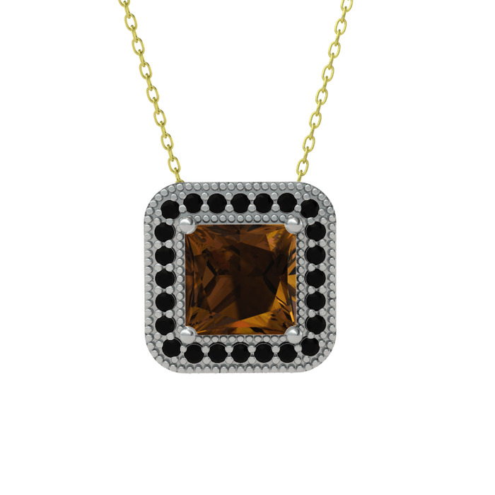 Dumanlı kuvars ve siyah zirkon 8 ayar beyaz altın kolye (40 cm altın rolo zincir)