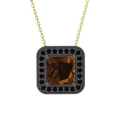 Dumanlı kuvars ve siyah zirkon 925 ayar siyah rodyum kaplama gümüş kolye (40 cm altın rolo zincir)