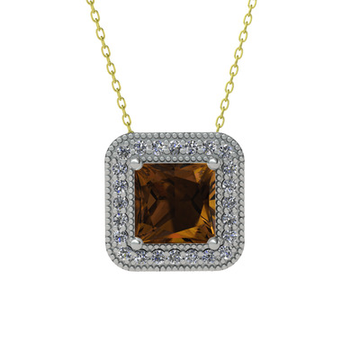 Dumanlı kuvars ve swarovski 8 ayar beyaz altın kolye (40 cm altın rolo zincir)