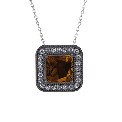 Dumanlı kuvars ve swarovski 925 ayar siyah rodyum kaplama gümüş kolye (40 cm beyaz altın rolo zincir)