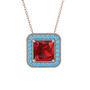 Garnet ve akuamarin 14 ayar beyaz altın kolye (40 cm rose altın rolo zincir)