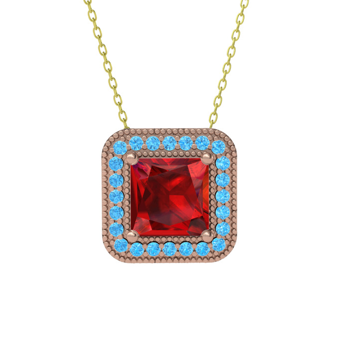 Garnet ve akuamarin 18 ayar rose altın kolye (40 cm altın rolo zincir)