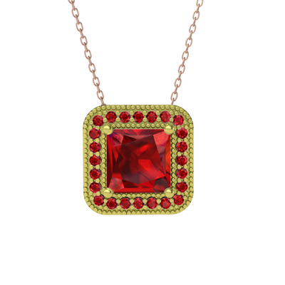 Garnet 925 ayar altın kaplama gümüş kolye (40 cm rose altın rolo zincir)