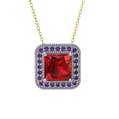 Garnet ve ametist 925 ayar gümüş kolye (40 cm gümüş rolo zincir)