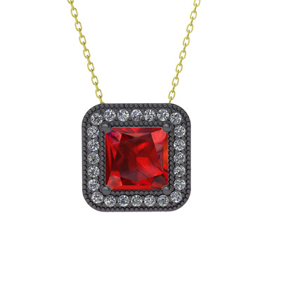 Garnet ve beyaz zirkon 925 ayar siyah rodyum kaplama gümüş kolye (40 cm altın rolo zincir)