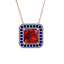 Garnet ve lab safir 8 ayar beyaz altın kolye (40 cm rose altın rolo zincir)
