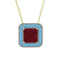Kök yakut ve akuamarin 18 ayar beyaz altın kolye (40 cm altın rolo zincir)