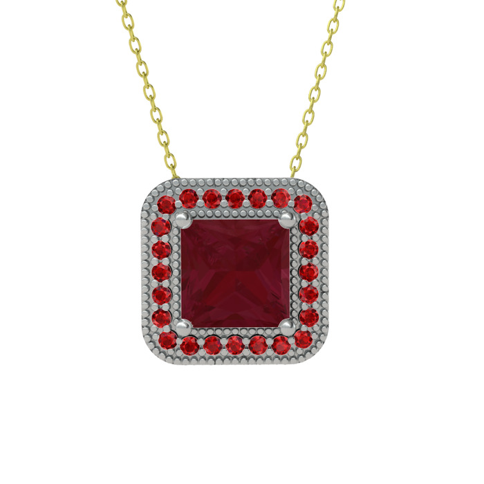 Kök yakut ve garnet 925 ayar gümüş kolye (40 cm altın rolo zincir)