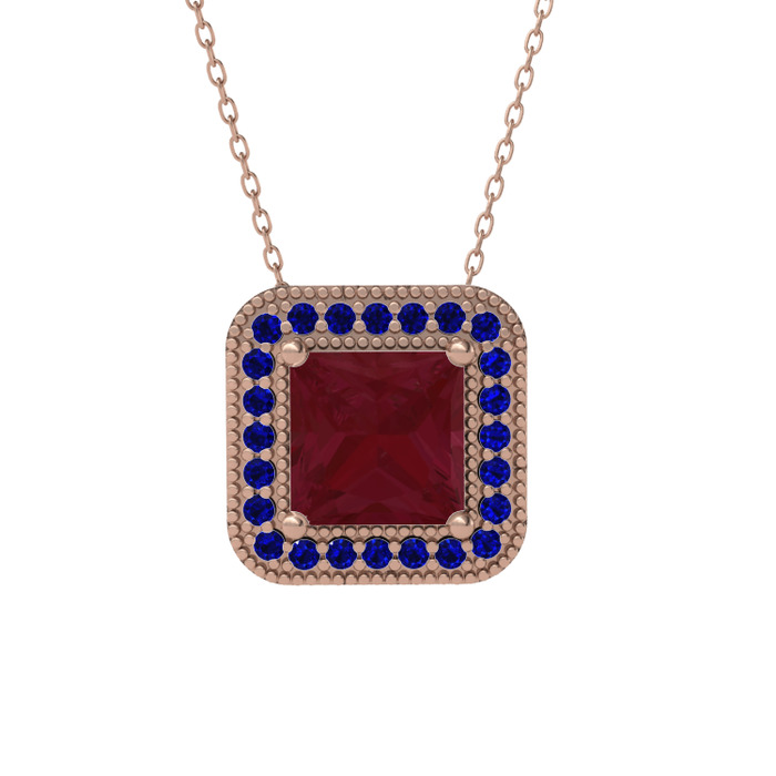 Kök yakut ve lab safir 18 ayar rose altın kolye (40 cm rose altın rolo zincir)