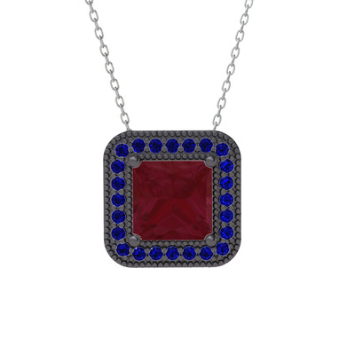 Kök yakut ve lab safir 925 ayar siyah rodyum kaplama gümüş kolye (40 cm gümüş rolo zincir)