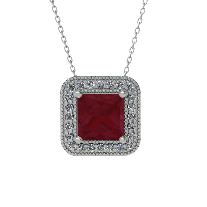 Kök yakut ve pırlanta 18 ayar beyaz altın kolye (0.264 karat, 40 cm beyaz altın rolo zincir)