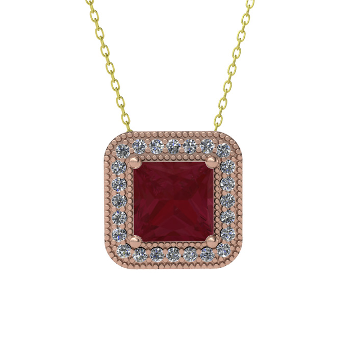 Kök yakut ve pırlanta 925 ayar rose altın kaplama gümüş kolye (0.264 karat, 40 cm gümüş rolo zincir)