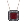 Kök yakut ve pırlanta 925 ayar siyah rodyum kaplama gümüş kolye (0.264 karat, 40 cm rose altın rolo zincir)