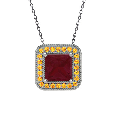 Kök yakut ve sitrin 925 ayar gümüş kolye (40 cm gümüş rolo zincir)
