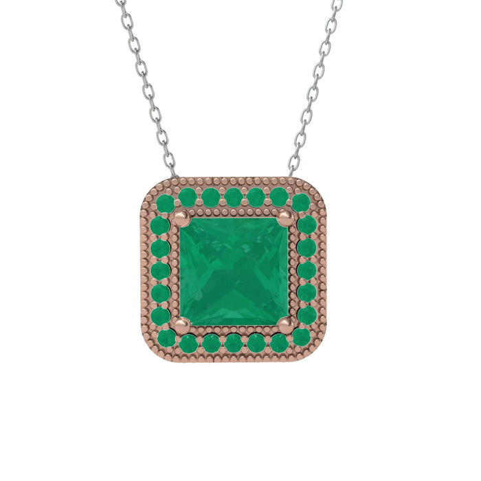 Kök zümrüt 14 ayar rose altın kolye (40 cm beyaz altın rolo zincir)