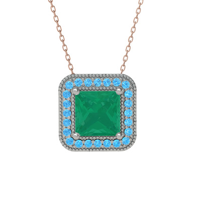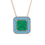 Kök zümrüt ve akuamarin 18 ayar beyaz altın kolye (40 cm rose altın rolo zincir)