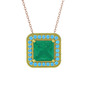 Kök zümrüt ve akuamarin 925 ayar altın kaplama gümüş kolye (40 cm rose altın rolo zincir)