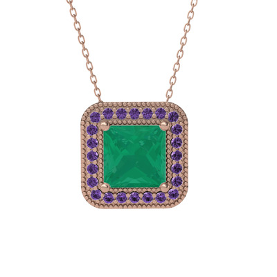 Kök zümrüt ve ametist 14 ayar rose altın kolye (40 cm rose altın rolo zincir)