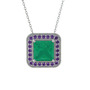 Kök zümrüt ve ametist 8 ayar beyaz altın kolye (40 cm gümüş rolo zincir)