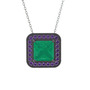 Kök zümrüt ve ametist 925 ayar siyah rodyum kaplama gümüş kolye (40 cm beyaz altın rolo zincir)