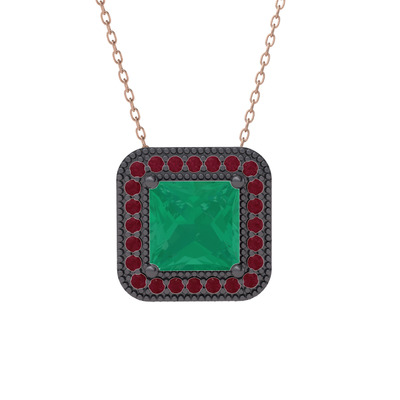 Kök zümrüt ve kök yakut 925 ayar siyah rodyum kaplama gümüş kolye (40 cm gümüş rolo zincir)