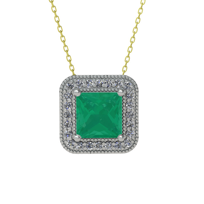 Kök zümrüt ve pırlanta 18 ayar beyaz altın kolye (0.264 karat, 40 cm gümüş rolo zincir)