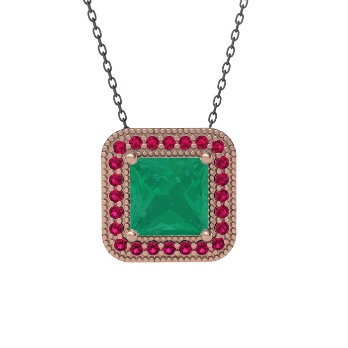 Kök zümrüt ve rodolit garnet 18 ayar rose altın kolye (40 cm gümüş rolo zincir)