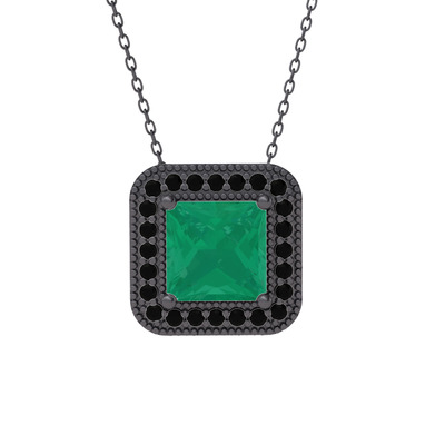 Kök zümrüt ve siyah zirkon 925 ayar siyah rodyum kaplama gümüş kolye (40 cm gümüş rolo zincir)