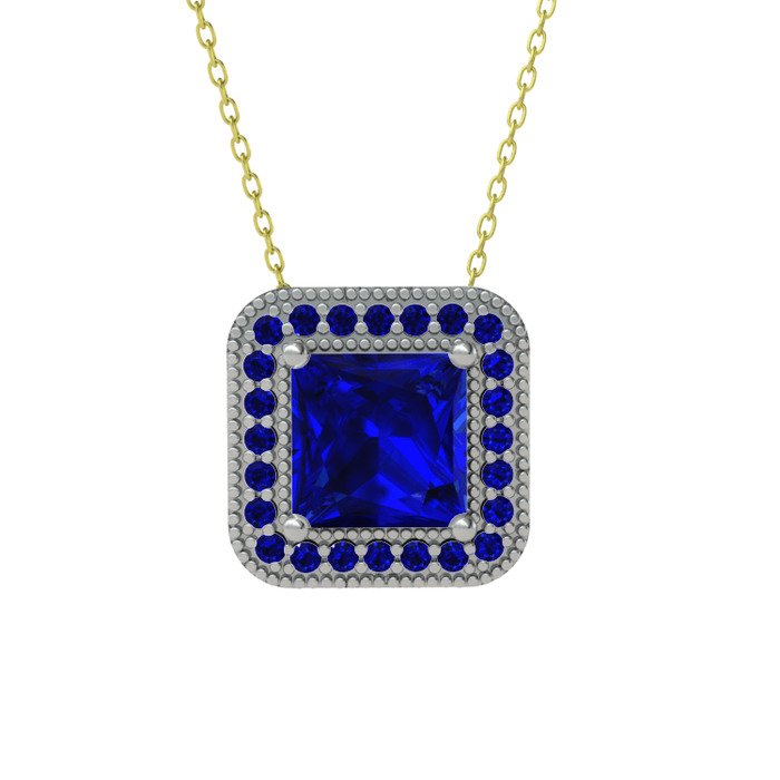 Lab safir 14 ayar beyaz altın kolye (40 cm altın rolo zincir)