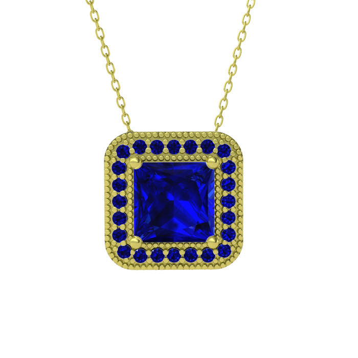Lab safir 8 ayar altın kolye (40 cm altın rolo zincir)