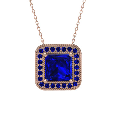 Lab safir 8 ayar rose altın kolye (40 cm rose altın rolo zincir)