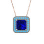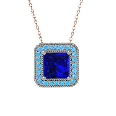 Lab safir ve akuamarin 14 ayar beyaz altın kolye (40 cm gümüş rolo zincir)
