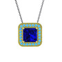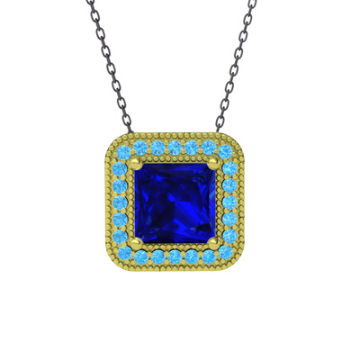 Lab safir ve akuamarin 18 ayar altın kolye (40 cm gümüş rolo zincir)
