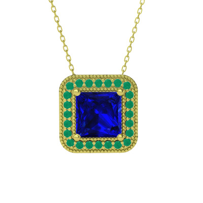 Lab safir ve kök zümrüt 14 ayar altın kolye (40 cm altın rolo zincir)