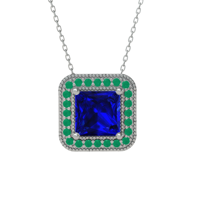 Lab safir ve kök zümrüt 8 ayar beyaz altın kolye (40 cm beyaz altın rolo zincir)