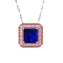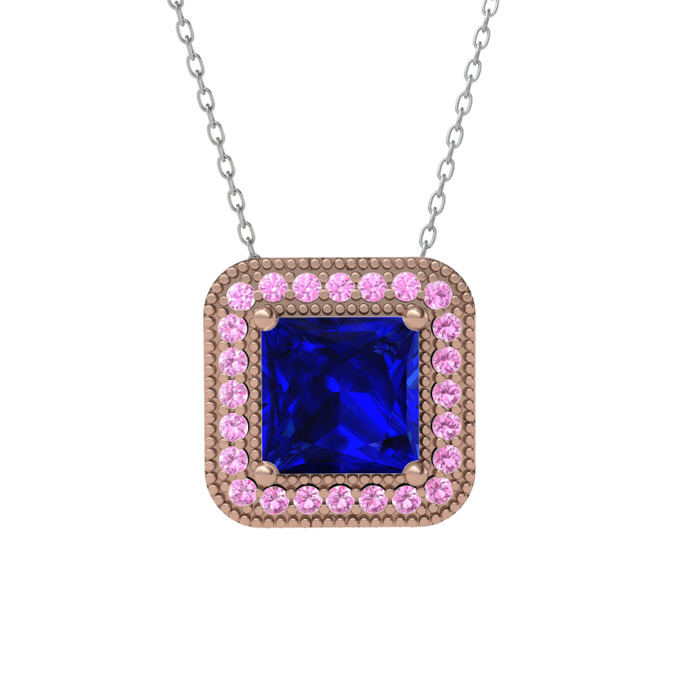 Lab safir ve pembe kuvars 18 ayar rose altın kolye (40 cm beyaz altın rolo zincir)