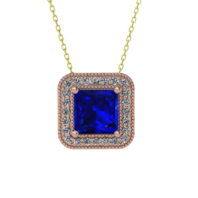 Lab safir ve pırlanta 8 ayar rose altın kolye (0.264 karat, 40 cm altın rolo zincir)
