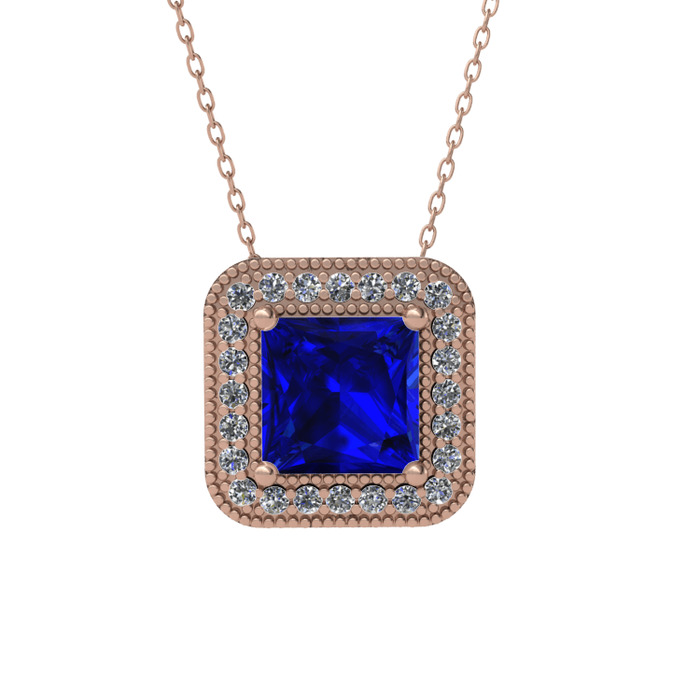 Lab safir ve pırlanta 8 ayar rose altın kolye (0.264 karat, 40 cm gümüş rolo zincir)
