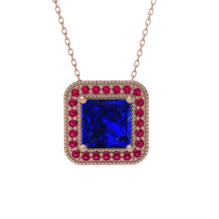 Lab safir ve rodolit garnet 8 ayar rose altın kolye (40 cm rose altın rolo zincir)