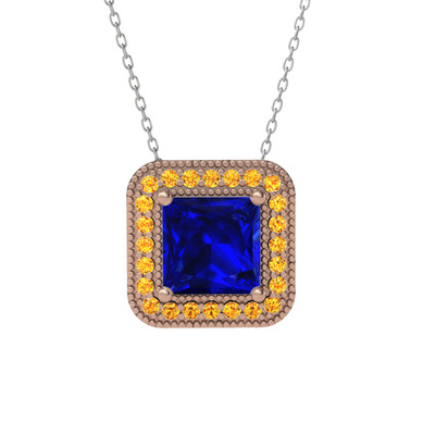 Lab safir ve sitrin 14 ayar rose altın kolye (40 cm beyaz altın rolo zincir)