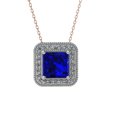 Lab safir ve swarovski 14 ayar beyaz altın kolye (40 cm rose altın rolo zincir)