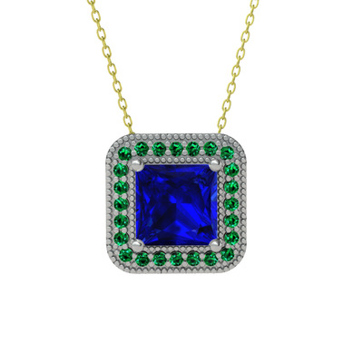 Lab safir ve yeşil kuvars 18 ayar beyaz altın kolye (40 cm gümüş rolo zincir)
