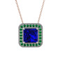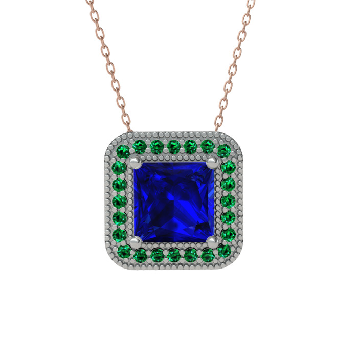Lab safir ve yeşil kuvars 8 ayar beyaz altın kolye (40 cm gümüş rolo zincir)