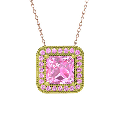 Pembe kuvars 18 ayar altın kolye (40 cm rose altın rolo zincir)