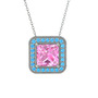 Pembe kuvars ve akuamarin 18 ayar beyaz altın kolye (40 cm gümüş rolo zincir)