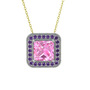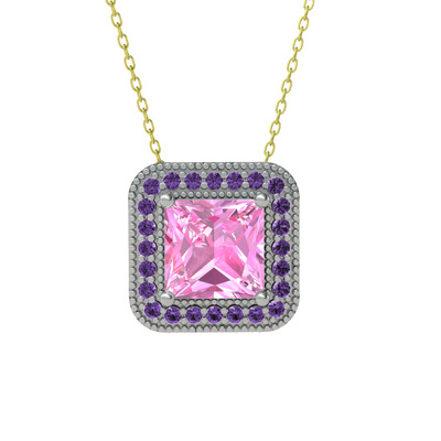 Pembe kuvars ve ametist 18 ayar beyaz altın kolye (40 cm gümüş rolo zincir)