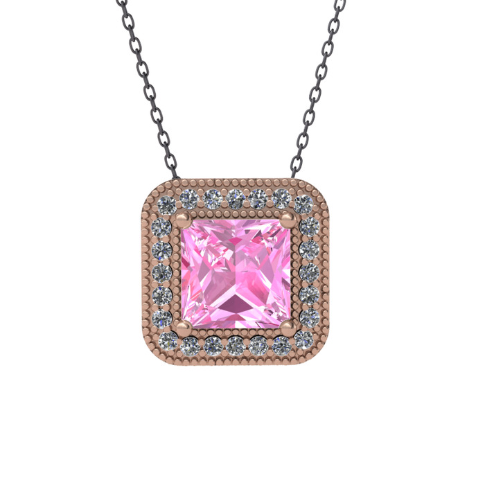 Pembe kuvars ve beyaz zirkon 8 ayar rose altın kolye (40 cm gümüş rolo zincir)
