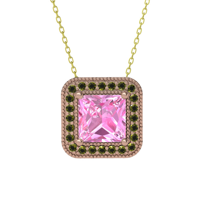 Pembe kuvars ve peridot 925 ayar rose altın kaplama gümüş kolye (40 cm altın rolo zincir)