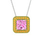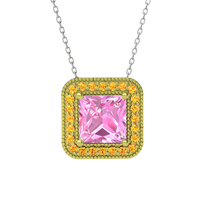 Pembe kuvars ve sitrin 18 ayar altın kolye (40 cm beyaz altın rolo zincir)